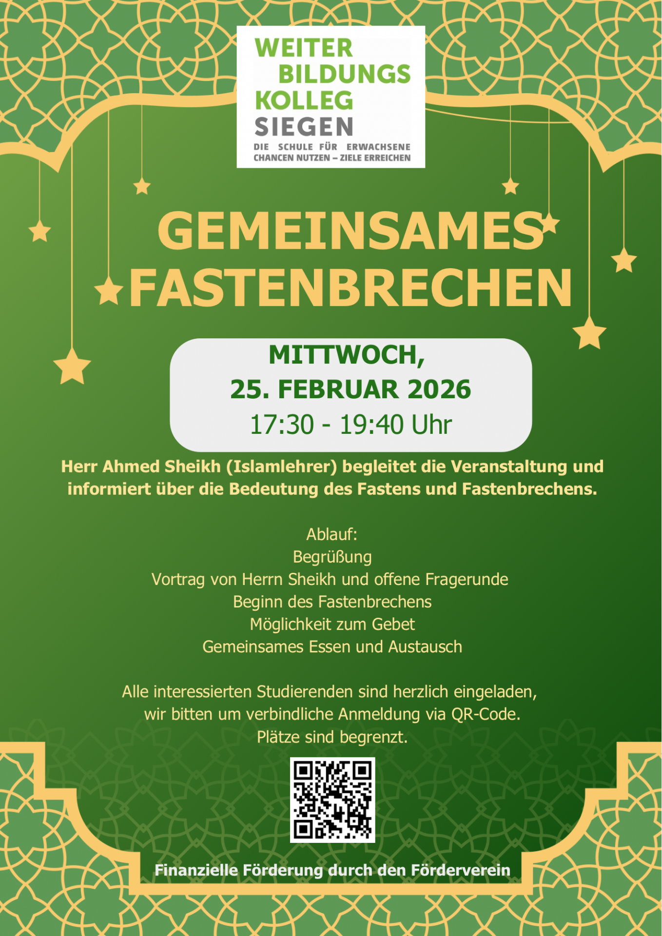 Unser Vorteil: Als allgemeinbildende Schule in der Trägerschaft der Stadt Siegen ist der Schulbesuch bei uns nicht nur kostenlos, sondern kann auch finanziell nach BAföG gefördert werden. Eine Aufnahme ist nach den Sommerferien und z.T. auch Anfang Februar möglich. Anmeldungen sind jederzeit möglich.